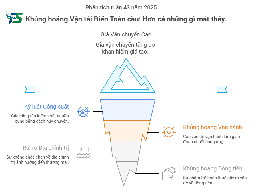 Báo cáo cập nhật thị trường logistics quốc tế Tuần 43/2025 của Phaata chỉ ra rằng thị trường đang ở trong một trạng thái không bền vững, bị thúc đẩy bởi sự hỗn loạn chứ không phải bởi sự khỏe mạnh của nền kinh tế. Sự phi lý này được xác định do ba yếu tố chính đang chi phối thị trường.